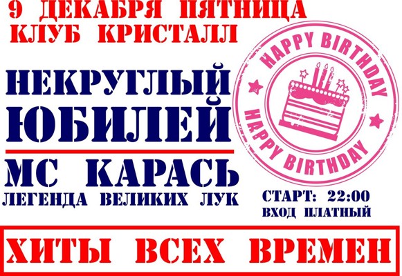 Некруглый юбилей 9 декабря 14 декабря 2011 14:40 0 Место проведения:Клуб «Кристалл».Адрес: ул. Некрасова, 31/3Справки по телефону: 3-15-25 Поделиться: