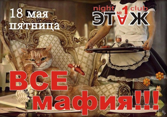 Мафия 18 мая 16 мая 2012 11:42 0 Место проведения:Клуб «Этаж»Начало:18 мая — 22:00Телефон: +7 911 899 03 77 Поделиться: