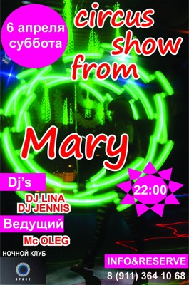 Цирковое шоу 6 апреля 2 апреля 2013 17:06 0 Клуб Space6 апреля — 22:00Адрес: пр. Ленина, д. 55аТелефон: +7 911 364 10 68 Поделиться: