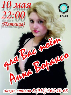 Анна Вораксо 10 мая 8 мая 2013 11:59 0 Клуб Space10 мая — 22:00Адрес: пр. Ленина, д. 55аТелефон: +7 911 364 10 68 Поделиться: