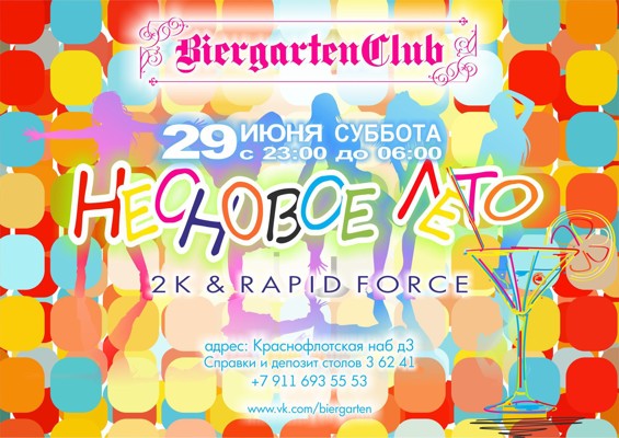 Неоновое лето 29 июня 19 июня 2013 17:10 0 Бар BierGarten29 июня — 23:00 — 6:00Цена: 150 рублей, по спискам: 100 рублей.Адрес: Краснофлотская набережная, дом 3Телефон: 3-62-41, +7 911 693 55 53 Поделиться: