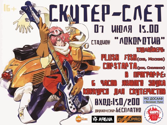 Скутер-слет 7 июля 26 июня 2013 16:15 0 Стадион «Локомотив»7 июля — 15:00Адрес: пр. Гагарина, 92 Поделиться: