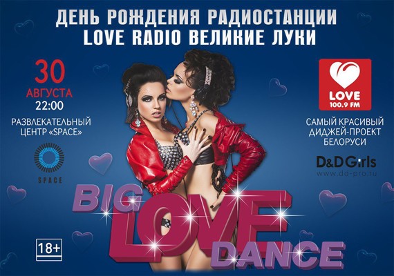 Big Love Dance 30 августа 31 июля 2013 16:42 0 Клуб Space30 августа — 22:00Адрес: пр. Ленина, д. 55аТелефон: +7 911 364 10 68 Поделиться: