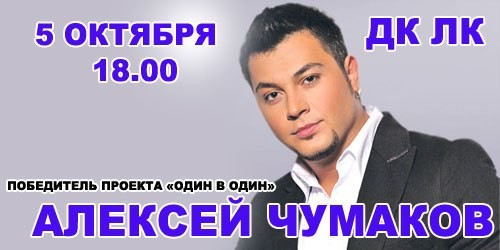 Алексей Чумаков: ОТМЕНЕНО 5 октября 13 августа 2013 17:41 0 ДК ЛК5 октября — 18:00Адрес: г. Великие Луки, ул. Зверева, д. 29Телефон: 5-72-75 Поделиться: