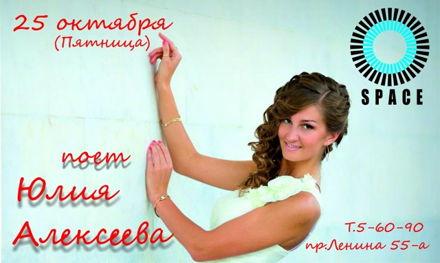 Юлия Алексеева 25 октября 25 октября 2013 12:08 0 Клуб Space25 октября — 23:00Адрес: пр. Ленина, д. 55аТелефон: +7 911 364 10 68 Поделиться: