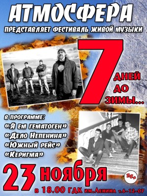 Фестиваль «Атмосфера» 23 ноября 31 октября 2013 15:28 0 ДК имени Ленина23 ноября — 18:00Адрес: ул. Малышева, д. 13Телефон: 6-12-07 Поделиться: