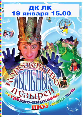 Спектакль наполнен интерактивными конкурсами для детей с вручением призов и подарков. Три цирковых номера и заключительная часть спектакля — 20 минутное шоу мыльных пузырей. В фойе каждый желающий может сфотографироваться в огромном мыльном пузыре (услуга платная). Для детей от 3 до 11 лет.