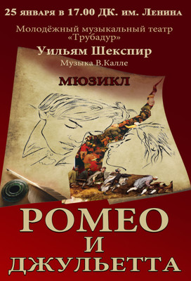 Ромео и Джульетта 25 января 15 января 2014 15:04 0 ДК имени Ленина25 января — 17:00Адрес: ул. Малышева, д. 13Телефон: 3-52-20 Поделиться: