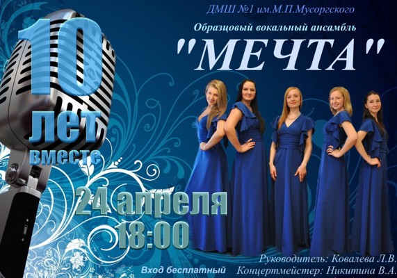 10 лет ансамблю «Мечта» 24 апреля 23 апреля 2014 16:12 0 Детская музыкальная школа №1 имени Мусоргского24 апреля — 18:00Адрес: пл. Ленина, д. 3Телефон: 3-82-58 Поделиться: