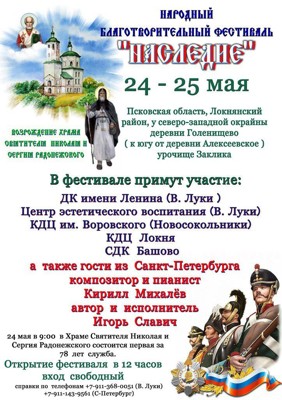 - Первый народный благотворительный фестиваль «Наследие» пройдет 24 — 25 мая в урочище Заклика