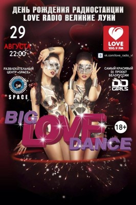 Big Love Dance 29 августа 30 июля 2014 17:01 0 Клуб Space29 августа — 23:00Адрес: пр. Ленина, д. 55аТелефон: +7 911 364 10 68 Поделиться: