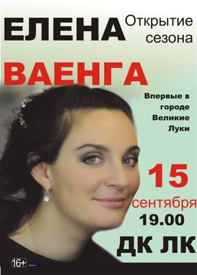 Елена Ваенга 15 сентября 11 августа 2014 15:33 0 ДК ЛК15 сентября — 19:00Адрес: г. Великие Луки, ул. Зверева, д. 29Телефон: 5-72-75 Поделиться: