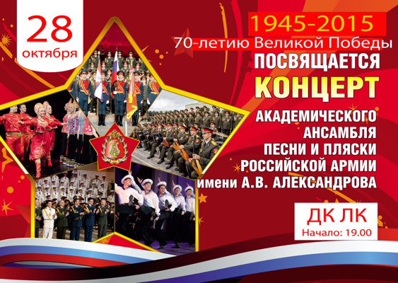 Хор имени Александрова 28 октября 30 сентября 2014 11:44 0 ДК ЛК28 октября — 19:00Адрес: г. Великие Луки, ул. Зверева, д. 29Телефон: 5-72-75 Поделиться: