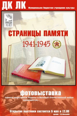 Фотовыставка «Страницы памяти 1941-1945» 6+ 28 апреля 2015 16:05 0 ДК ЛКс 5 маяАдрес: г. Великие Луки, ул. Зверева, д. 29Телефон: 5-72-75 Поделиться:
