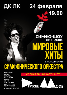 Симфо-шоу «Мировые хиты» 12+ 26 ноября 2015 18:14 0 ДК ЛК Адрес: Зверева, 2924 февраля — 19.00 Телефон: 5-72-75 Поделиться: