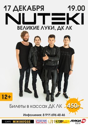 Nuteki 12+ 9 декабря 2015 21:15 0 ДК ЛК 17 декабря — 19:00Адрес: улица Зверева, 29Телефон: 5-72-75 Поделиться: