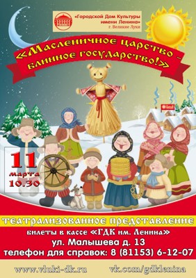 Масленица 0+ 2 марта 2016 11:12 0 Городской парк культуры и отдыха12 марта — 12:00Адрес: Краснофлотская набережнаяТелефон: 3-63-11 Поделиться: