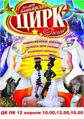 Башкирский цирк «Вегас» 6+ 8 апреля 2016 12:18 0 ДК ЛК12 апреля — 10:00, 12:00, 18:00Адрес: ул. Зверева, 29 Поделиться: