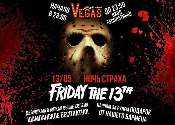Ночь страха 18+ 11 мая 2016 23:58 0 Клуб «Вегас»13 мая — 23:00Адрес: проспект Гагарина, 118Телефон: +7 911 382 24 40 Поделиться:
