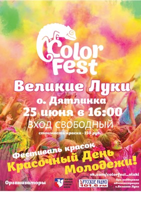 Фестиваль красок Холи 0+ 15 июня 2016 10:59 0 Остров Дятлинка25 июня — 16:00Группа: vk.com/colorfest_vluki Поделиться: