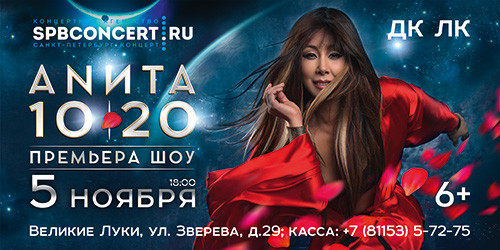 Анита Цой 12+ 30 августа 2016 16:15 0 ДК ЛК5 ноября — 18:00Адрес: ул. Зверева, 29Телефон: 5-72-75 Поделиться: