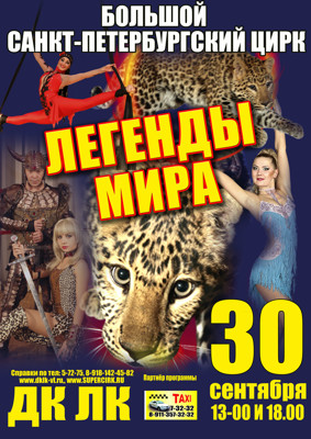 Большой санкт-петербургский цирк 0+ 22 сентября 2016 11:07 0 ДК ЛК30 сентября — 13:00, 18:00Адрес: ул. Зверева, 29Телефон: 5-72-75 Поделиться: