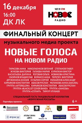 Новые голоса 6+ 8 декабря 2017 12:35 0 ДК ЛК 16 декабря 2017 года — 16:00Адрес: улица Зверева, 29Телефон: 5-72-75 Поделиться: