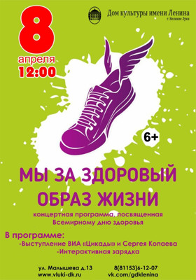 Концертная программа «Мы за здоровый образ жизни» 6+ 20 марта 2019 16:45 0 Городской Дом Культуры имени Ленина8 апреля — 12:00Адрес: улица Малышева, 13Телефон: 6-12-07 Поделиться: