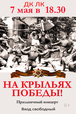 Праздничный концерт «На крыльях Победы» 0+ 8 апреля 2019 14:30 0 ДК ЛК 7 мая — 18:30Адрес: улица Зверева, 29Телефон: 5-72-75 Поделиться: