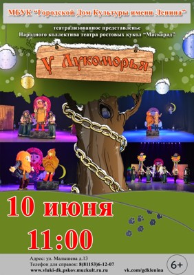 Театрализованное представление «У Лукоморья» 6+ 29 мая 2019 10:57 0 Городской Дом Культуры имени Ленина10 июня — 11:00Адрес: улица Малышева, 13Телефон: 6-12-07 Поделиться: