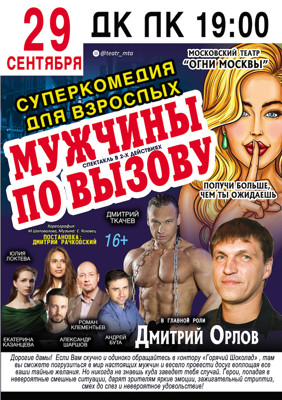 Суперкомедия для взрослых «Мужчины по вызову» 16+ 3 сентября 2020 12:11 0 ДК ЛК 29 сентябряАдрес: улица Зверева, 29Телефон: 5-72-75 Поделиться: