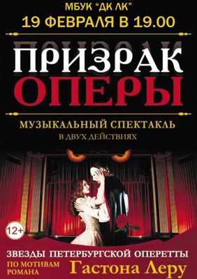 Музыкальный спектакль «Призрак оперы» 12+ 20 января 2021 15:32 0 ДК ЛК 19 февраля в 19:00Адрес: улица Зверева, 29Телефон: 5-72-75 Поделиться: