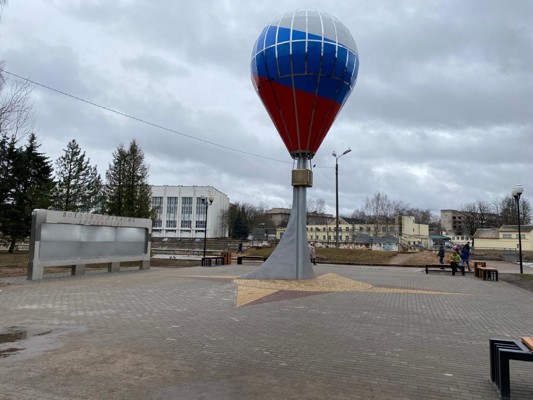 На данный момент ведётся согласование с ПАО «МРСК Северо-Запада» по установке световых опор на территории памятного знака. Причём, запланировано обустроить освещение таким образом, чтобы не только осветить площадку, где установлен знак, но и направить световые потоки на саму конструкцию шара, сфокусировать освещение именно на аэростате и информационном стенде.