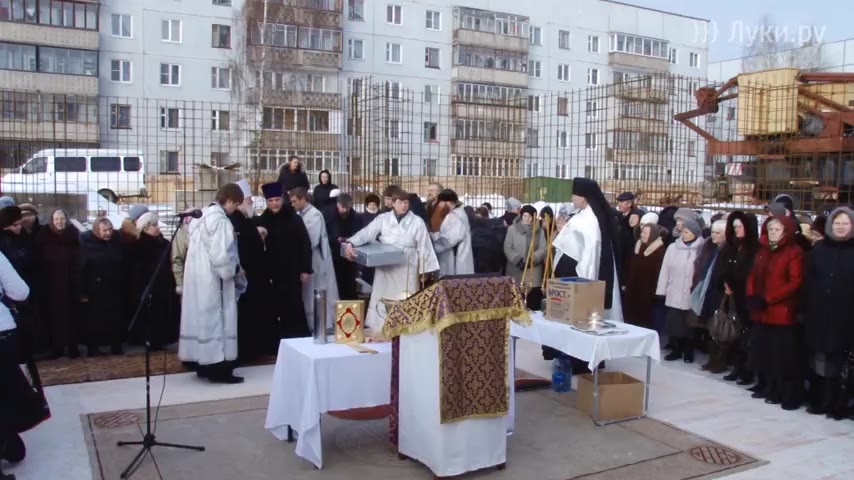 После молебна состоялось подписание грамоты об освящении храма. Свои росписи на документе поставили митрополит Евсевий, губернатор Псковской области Андрей Турчак, глава администрации Великих Лук Николай Козловский, глава города Виктор Волынцев и игумен Савватий. После чего грамота была запаяна в капсулу и заложена для потомков в основание будущего храма.