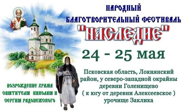 Двадцать четвертого — двадцать пятого мая в урочище Никольская Заклика (ныне несуществующей деревне Никольское) на территории Локнянского района пройдет первый благотворительный народный фестиваль «Наследие», посвященный празднованию Дня Николы Вешнего.