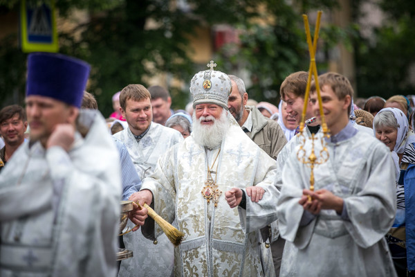 0 69 фотоДвадцать девятого мая Вознесенский собор был полон. Верующие во главе с духовенством обошли квартал, в котором находился женский вознесенский монастырь: от храма по улице Либкнехта, Пионерской, проспекту Ленина и улице Некрасова.