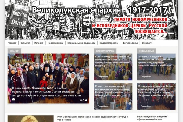 Новый информационный ресурс обобщает информацию о событиях Великолукской епархии, посвященных 100-летию начала эпохи гонений на Русскую Православную Церковь. На страницах портала размещены: лента текущих новостей, сообщения по истории Великолукской епархии, жизнеописания новомучеников и исповедников земли Великолукской, фото и видео материалы, а также доступны для скачивания все выпуски «Псковских епархиальных ведомостей» с 1894 по 1917 годы.