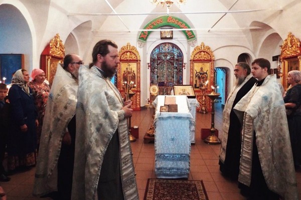 Под колокольный звон главные святыни крестного хода, ковчег с частицей мощей святого благоверного князя Александра Невского и икону святого торжественно внесли в кафедральный собор и установили в центре для молитвенного поклонения. Перед святынями был совершен молебен, после чего все присутствующие смогли приложиться к святым мощам и иконе, и состоялось помазание.