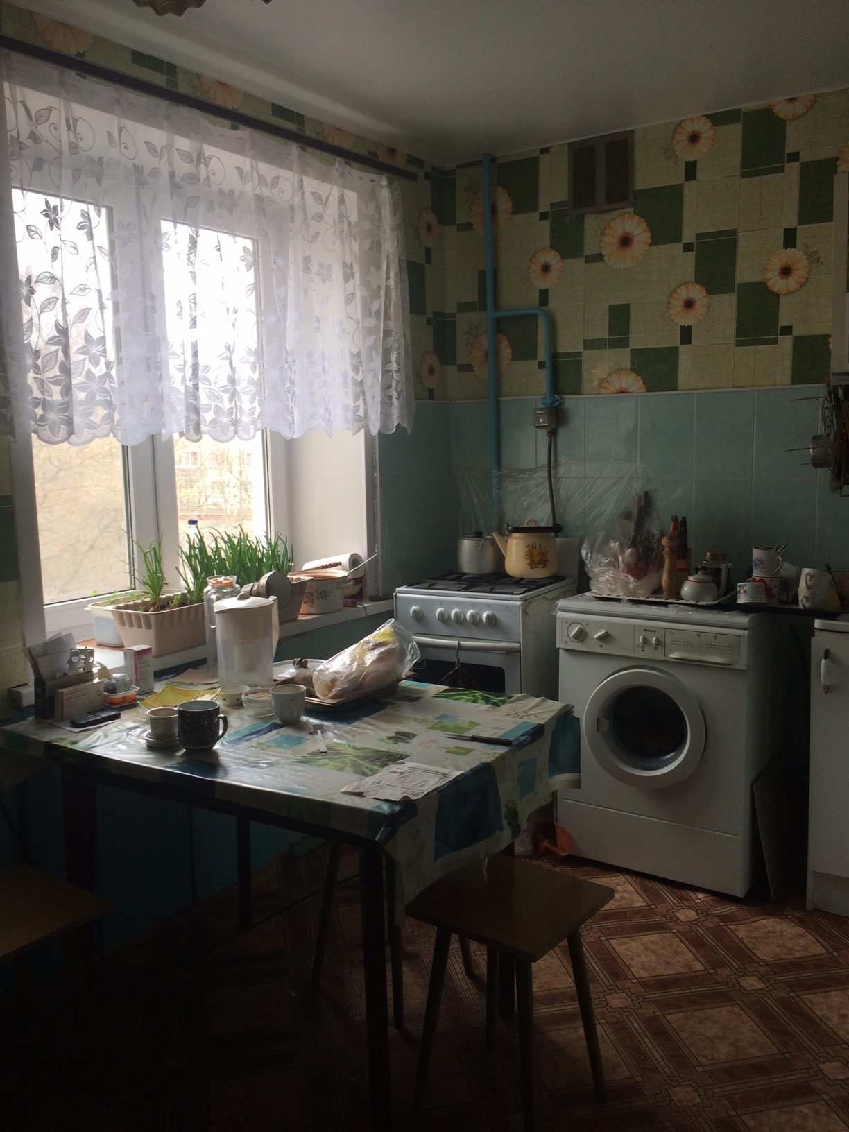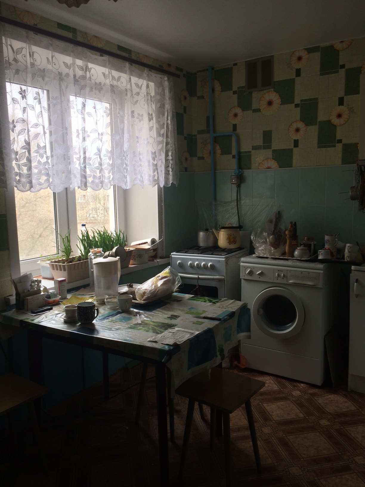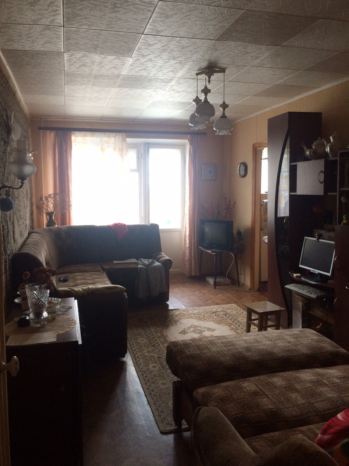 3/5 кирпичного дома, 53 кв м.; с/у раздельный, комнаты смежные, большая кухня; балкон, окна на две стороны; горячая вода, природный газ; счётчики.