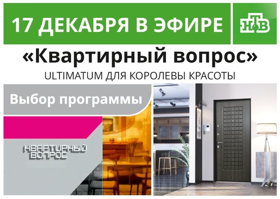 Эфир программы «Квартирный вопрос» на НТВ 17 декабря в 12:00, повтор 20 декабря в 2:55.