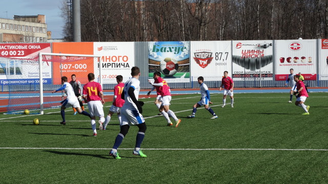 И вторую половину этой смоленской встречи соперники провели довольно агрессивно. Попеременно атаковали и те и другие, но пока реальных угроз воротам не возникало. На 56 минуте «бело-голубые» подают очередной угловой. Мяч на дальней штанге выуживает Александр Фомичёв и отправляет его в сетку, доводя счёт до разгромного.