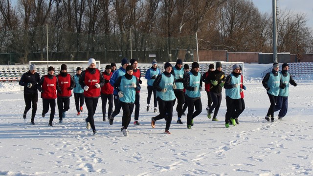 Разминку футболисты начали в яркую солнечную погоду при минус 7 градусах. Затем игроки «Луки-Энергии», разделившись на две команды по 10 человек в каждой, провели два тайма по 30 минут. Главный тренер Сергей Осадчук внимательно наблюдал за происходящим на поле, а его помощник Евгений Лосев непосредственно участвовал в игре.