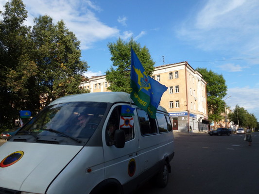 Несмотря на то, что День ВДВ в этом году выпал на середину недели, задолго до окончания рабочего дня по городу то там, то тут мелькали люди в голубых беретах, ездили машины с флагами и флажками с эмблемами воздушно-десантных войск. Начиная с шести часов вечера, количество мужчин на улицах в знаковых головных уборах увеличивалось в математической прогрессии.