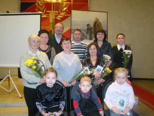 Перед гостями музея выступили: внучка Матвея Кузьмина Валентина Ивановна Пугачева, которая рассказала о жизни семьи Кузьминых, поделилась впечатлениями о трудном и героическом времени; правнучка Пугачева Наталья Петровна и праправнучка Герасимович Алеся представили презентацию «Нет в России семьи такой, где б не памятен был свой герой», познакомили с традициями своей семьи. Они провели большую работу в создании древа семьи Матвея Кузьмина и подарили его школьному музею лычевской средней школы для исследовательской работы.