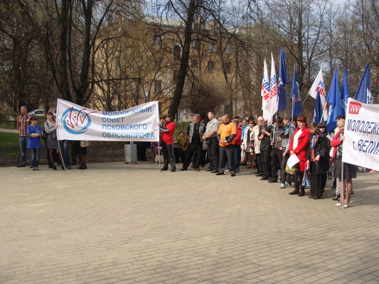 В субботу, 28 апреля, на площади Рокоссовского состоялся митинг «Довольно обещаний, пора приступать к делу!», на котором выступили члены профсоюзных организаций города Великие Луки. Участники митинга сформулировали свои требования к органам власти и проголосовали за программу, выдвигаемую профсоюзами России.