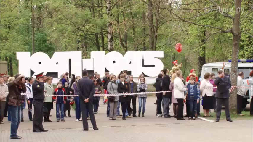 Великолучан и гостей города поздравил с праздником глава администрации города Великие Луки Алексей Новиков. От имени ветеранов выступил Иван Власович Шершнев, поздравил великолучан с праздником и игумен Савватий. Участники слета в Опухликах «Союз 2012 — Наследники Победы» подарили Великим Лукам копию знамени Восьмой гвардейской дивизии герой Советского Союза Ивана Панфилова.