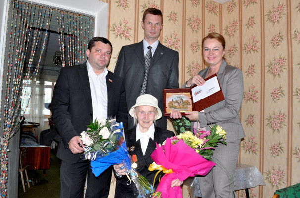 В минувшую субботу почётную миссию — поздравить со знаменательными юбилеями двух великолучанок от имени Президента РФ — выполнили заместитель главы Администрации города Великие Луки Ираида Бушенкова, и.о. председателя государственного комитета Псковской области по молодёжной политике Алексей Егоров, депутат Великолукской городской Думы Максим Козлов и заведующая отделением реабилитации и срочной помощи Центра социального обслуживания Анастасия Коноваленко.