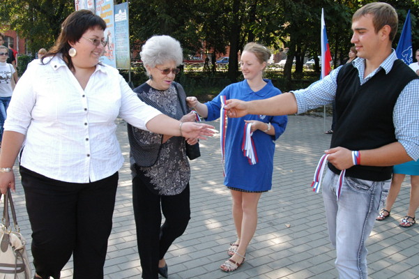 Ленточки с триколором будут раздавать в трех местах города: на площади Калинина, у драматического театра и на перекрестке улицы Некрасова с проспектом Ленина.