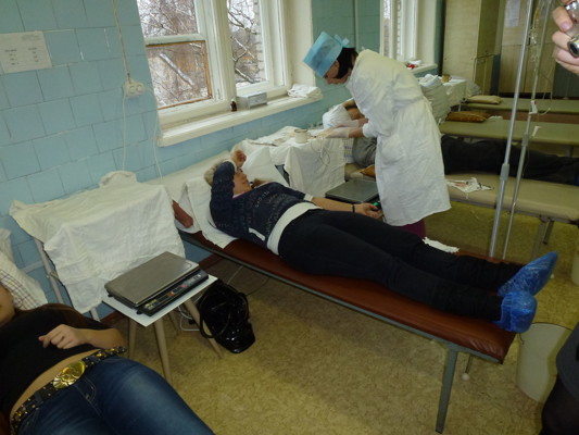 За одну дачу крови по закону еще полагается два отгула, если сдавать кровь регулярно, а это где-то 5 — 6 раз в год, отгулов наберется 10 — 12. Только вот удовольствие это сомнительное. Почти все доноры, с которыми мне удалось пообщаться рассказали, что отгулы эти не используют. Руководство многих городских учреждений и предприятий популярно разъяснило донорам, что им не нужны сотрудники, которые будут отсутствовать на рабочем месте за их счет. Работающие с выработки, как, например, таксисты или продавцы, и сами эти отгулы брать не будут. Безработным, а таких среди доноров немало, вполне понятно, отгулы тоже не нужны. Остаются только бюджетники, те же медики, учителя и т.д., — в этих организациях трудовое законодательство соблюдается.