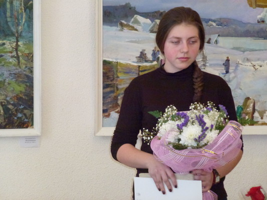 После поздравлений огласили имя лауреата премии Алексея Большакова. В этом году им стала учащаяся 6 класса ДХШ Екатерина Косарева. Согласно положению о награждении, лауреат получает право на персональную выставку, которая будет организована в течение года.